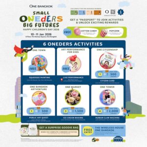 วัน แบงค็อก “เมืองกลางใจ” ศูนย์กลางไลฟ์สไตล์ระดับโลกใจกลางกรุงเทพฯ ร่วมเตรียมเปิดพื้นที่ต้อนรับวันเด็กแห่งชาติประจำปี 2569 อย่างยิ่งใหญ่ในงาน “Small Oneders Big Futures” (สมอลล์ วันเดอร์ส บิ๊ก ฟิวเจอร์ส) ระหว่างวันที่ 10-11 มกราคม 2569 ภายใต้ความเชื่อที่ว่าจินตนาการของเด็กคือพิมพ์เขียวสำหรับอนาคตที่ดีกว่า วัน แบงค็อก จึงได้เนรมิตทั่วทั้งโครงการให้กลายเป็น “เมืองแห่งคิด(ส์)ตนาการ” ที่ซึ่งเด็กqจะได้สวมบทบาทเป็น ‘City Makers’ หรือนักสร้างเมืองรุ่นใหม่ ปลดปล่อยจินตนาการออกแบบและสร้างสรรค์ “เมืองในวันพรุ่งนี้” ตามความฝันของตนเอง