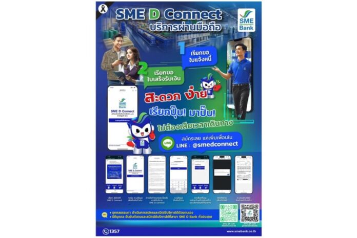 ธนาคารพัฒนาวิสาหกิจขนาดกลางและขนาดย่อมแห่งประเทศไทย (ธพว.) หรือ SME D Bank เปิดบริการใหม่ “SME D Connect” อำนวยความสะดวกให้แก่ลูกค้าธนาคาร ทั้งกลุ่มบุคคลธรรมดา และนิติบุคคล สามารถเรียกขอ “ใบเสร็จรับเงิน” และ “ใบแจ้งหนี้” ได้ทันทีผ่านสมาร์ทโฟน ช่วยเพิ่มความสะดวกสบาย ไม่ต้องเสียเวลาเดินทาง เริ่มใช้งานได้ตั้งแต่วันที่ 7 มกราคม 2569 เป็นต้นไป โดยสมัครใช้งานง่ายๆ เพียงแค่ “เพิ่มเพื่อน” ในโปรแกรม LINE โดยเข้าไปที่เมนูเพิ่มเพื่อน และพิมพ์ “@smedconnect” ในช่องค้นหา โดยลูกค้ากลุ่มบุคคลธรรมดา ดำเนินการสมัครและเปิดใช้บริการได้ด้วยตัวเอง ส่วนลูกค้ากลุ่มนิติบุคคล ยืนยันตัวตนและสมัครใช้บริการครั้งแรกได้ที่สาขาของ SME D Bank ทั่วประเทศ สอบถามข้อมูลเพิ่มเติม Call Center 1357