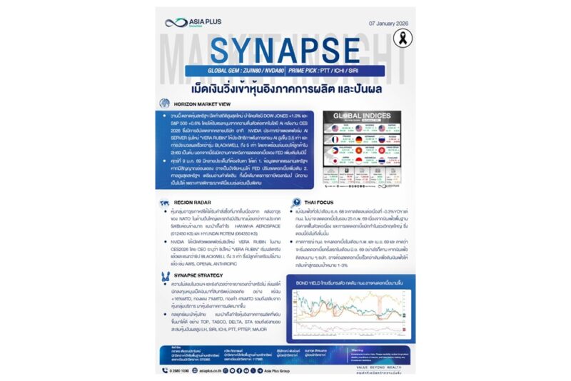 วันที่ 7 มกราคม 2569 บริษัทหลักทรัพย์ เอเซีย พลัส จำกัด (ASPS) เปิดเผยบทวิเคราะห์ระบุว่า ตลาดหุ้นสหรัฐฯ ทุบสถิติสูงสุดใหม่ ขานรับนวัตกรรม AI จากงาน CES 2026 บรรยากาศการลงทุนในตลาดหุ้นสหรัฐฯ วานนี้ปรับตัวขึ้นอย่างโดดเด่นจนสามารถสร้างสถิติสูงสุดใหม่ (All-time High) นำโดยดัชนี DOW JONES ที่บวก 1.0% และ S&P 500 เพิ่มขึ้น 0.6% แรงหนุนสำคัญมาจากความตื่นตัวในเทคโนโลยี AI ภายหลังการอัปเดตข้อมูลในงาน CES 2026 โดยเฉพาะบริษัท NVIDIA ที่ได้เปิดตัวแพลตฟอร์มชิปใหม่ล่าสุดในชื่อ “Vera Rubin” ซึ่ง Jensen Huang ระบุว่าเริ่มเข้าสู่กระบวนการผลิตจริงแล้ว โดยมีประสิทธิภาพในการประมวลผลเร็วกว่ารุ่น Blackwell ถึง 5 เท่า และประหยัดพลังงานได้มากกว่า ซึ่งมีลูกค้ารายใหญ่ระดับโลกอย่าง AWS, OpenAI และ Anthropic เตรียมเข้าใช้งานแล้ว นอกจากนี้ นักลงทุนยังมีความคาดหวังเชิงบวกต่อการที่ธนาคารกลางสหรัฐฯ (FED) อาจพิจารณาปรับลดดอกเบี้ยเพิ่มเติมในปีนี้ หากข้อมูลตลาดแรงงานที่จะประกาศในวันที่ 9 มกราคม 2569 มีสัญญาณที่อ่อนแอลง