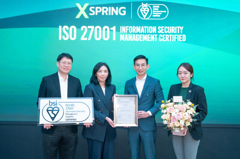 จากความมุ่งมั่นนี้ทำ ให้ล่าสุด XSPRING ได้รับการรับรองมาตรฐาน ISO/IEC 27001:2022 “มาตรฐานระดับโลกด้านความมั่นคงปลอดภัยสารสนเทศ” (Information Security Management System – ISMS) จากสถาบัน BSI (British Standards Institution) สถาบันมาตรฐานระดับโลกที่มีความเข้มงวดสูง ซึ่งการก้าวสู่มาตรฐานระดับโลกนี้เปรียบเสมือนการเสริมสร้างระบบการบริหารจัดการข้อมูลและสารสนเทศที่ได้รับการยอมรับในระดับสากล โดยไม่ได้ดูแลเพียงการตั้งรหัสผ่าน (Password) เท่านั้น แต่ยังครอบคลุมถึงระบบการจัดการ นโยบาย การประเมินความเสี่ยง และกระบวนการทำงานทั้งหมดเพื่อสนับสนุนให้ข้อมูลสำคัญของบริษัทและลูกค้าจะถูกเก็บรักษาไว้อย่างปลอดภัยที่สุด