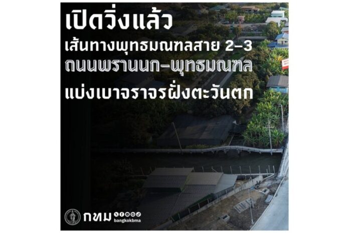 กทม.เปิดสัญจรถนนพรานนก–พุทธมณฑลสาย 4 ช่วงพุทธมณฑลสาย 2–3 แล้ววันนี้ ช่วยแบ่งเบาการจราจรฝั่งตะวันตก เพิ่มความคล่องตัวในการเดินทาง