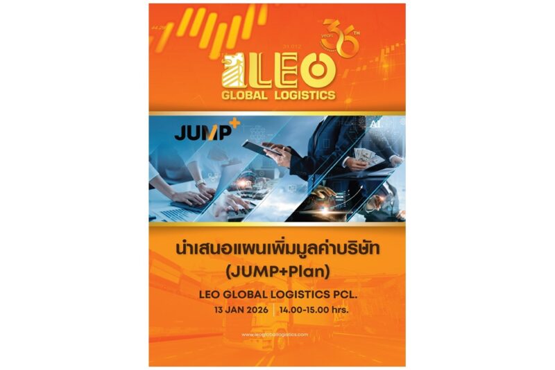 แฟนคลับ บมจ.ลีโอ โกลบอล โลจิสติกส์ (LEO) ทราบแล้วเปลี่ยน! เตรียมคิวให้พร้อมกับนัดสำคัญ…งานนำเสนอแผนเพิ่มมูลค่าบริษัท (JUMP+ Plan) ผ่าน Live broadcast ในวันอังคารที่ 13 มกราคม 2569 เวลา 14.00 – 15.00 น. งานนี้ CEO “เกตติวิทย์ สิทธิสุนทรวงศ์” พร้อมเดินหน้า JUMP+ เสริมศักยภาพบุคลากร รองรับการขยาย Trade Lanes – Rail – Non-Logistics ควบคู่ธรรมาภิบาลและ Climate Action พร้อมขึ้นแท่น “ผู้ให้บริการโลจิสติกส์แบบครบวงจรชั้นนำของไทย มีเครือข่ายครอบคลุมทั่วโลก เติบโตยั่งยืน และเป็นบริษัทอันดับหนึ่งในใจของลูกค้า พนักงาน และนักลงทุน” ตามเป้าหมายที่วางไว้… สำหรับนักลงทุนและผู้สนใจ สามารถติดตาม Live broadcast ได้ทาง https://listed-company-presentation.setgroup.or.th/vdo/10083 … อย่าพลาดมาร่วมรับฟังข้อมูลเด็ดกันนะคร้าาา!!