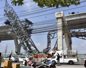 เหตุการณ์ดังกล่าวเกิดขึ้นเมื่อเวลาประมาณ 09.15 น. ของวันนี้ บนถนนพระราม 2 กม. 30 (ช่องหลักขาออก) พื้นที่ จ.สมุทรสาคร โดยโครงเหล็กติดตั้งสะพานร่วงหล่นทับรถยนต์ประชาชนเสียหาย 2 คัน มีผู้บาดเจ็บ 2 ราย กำลังรักษาตัวอยู่ที่โรงพยาบาล และมีผู้เสียชีวิตในจุดเกิดเหตุ 2 ราย