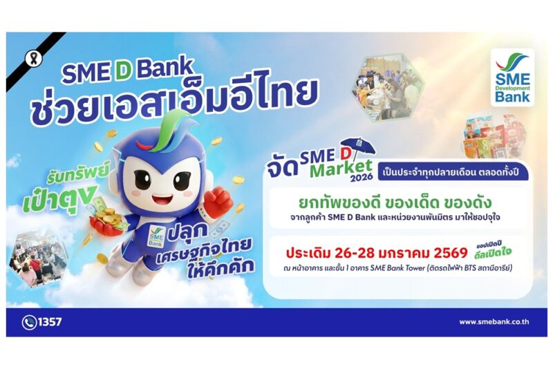 SME D Bank เคียงข้างช่วยเอสเอ็มอีไทย เดินหน้าจัด “SME D Market” ตลอดปี 2569 ประเดิม 26-28 ม.ค.นี้ รวมสุดยอดสินค้าดีให้ชอปจุใจ ปลุกพลังเศรษฐกิจให้คึกคัก