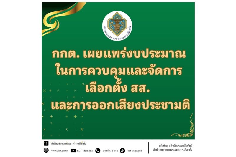 กกต. เผยแพร่งบประมาณในการควบคุมและจัดการเลือกตั้ง สส. และการออกเสียงประชามติ