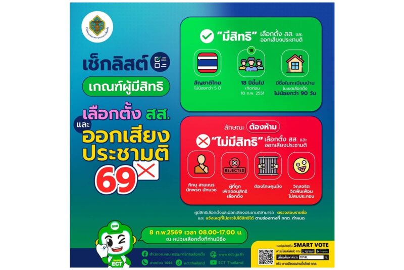 ตรวจสอบสิทธิให้พร้อม แล้วออกไปทำหน้าที่ของประชาชน วันอาทิตย์ที่ 8 กุมภาพันธ์ 2569 เวลา 08.00-17.00 น. พร้อมกันที่คูหา
