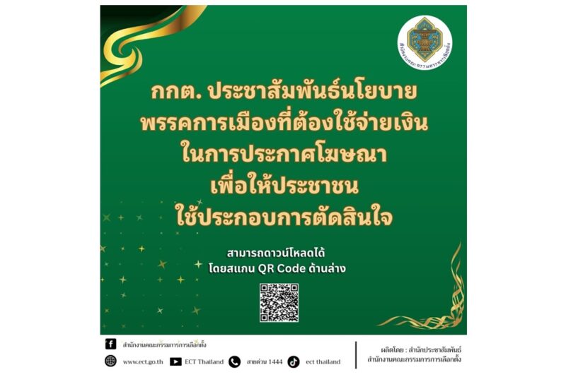 กกต.ประชาสัมพันธ์นโยบายพรรคการเมืองที่ต้องใช้จ่ายเงินในการประกาศโฆษณา เพื่อให้ประชาชนใช้ประกอบการตัดสินใจ