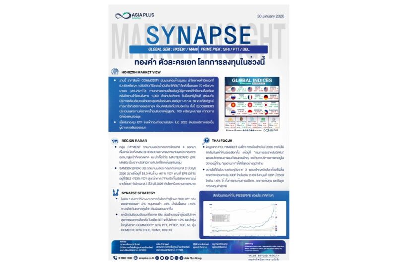 วันที่ 30 มกราคม 2569 บริษัทหลักทรัพย์ เอเซีย พลัส จำกัด (ASPS) เปิดเผยบทวิเคราะห์ ภาวะการลงทุนทั่วโลกผันผวนหนัก ตลาดการลงทุนทั่วโลกกำลังเผชิญกับภาวะปิดรับความเสี่ยง (Risk Off) อย่างรุนแรง ส่งผลให้เม็ดเงินไหลออกจากตลาดหุ้นและดอลลาร์เข้าสู่สินทรัพย์ปลอดภัย โดยเฉพาะ ทองคำที่พุ่งขึ้นทำจุดสูงสุดใหม่ที่ 5,440 เหรียญฯ และราคาน้ำมันดิบที่ปรับตัวสูงขึ้น ท่ามกลางวิกฤตภูมิรัฐศาสตร์ที่ตึงเครียด ขณะที่ประเทศไทยกำลังเข้าสู่โค้งสุดท้ายของการเลือกตั้งปี 2569 ที่เกมการจัดตั้งรัฐบาลอาจไม่ได้จบแค่ผลคะแนนหน้าคูหา