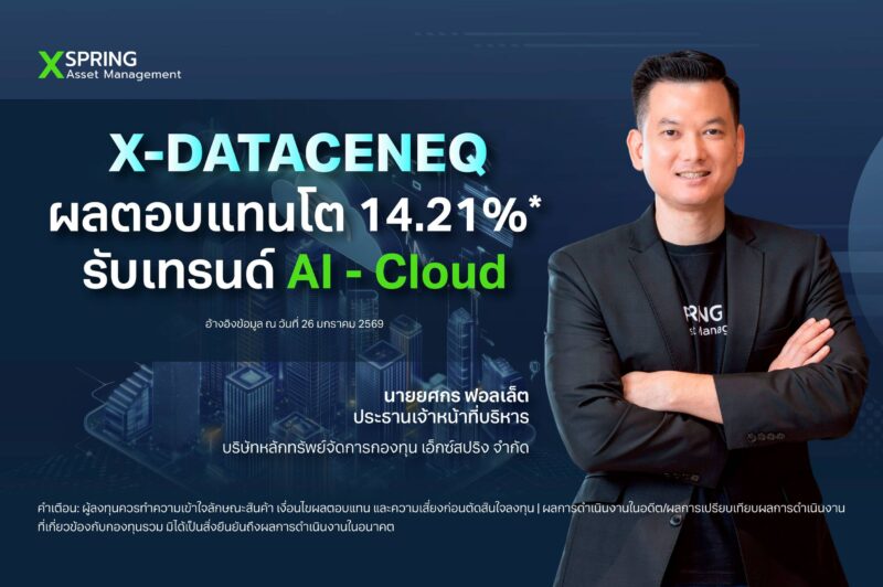 XSpring AM จุดพลุ “กองทุนเปิดเอ็กซ์สปริงศูนย์ข้อมูล และโครงสร้างพื้นฐานดิจิทัล อิควิตี้” หรือ X-DATACENEQ สร้างผลตอบแทนแล้ว 14.21% ในช่วง 1 เดือนที่ผ่านมา (ข้อมูล ณ วันที่ 26 ม.ค. 69) ผลงานเติบโตตามเทรนด์ AI – Cloud หัวใจสำคัญของเศรษฐกิจโลกดิจิทัล เผยนโยบายเน้นลงทุนในกองทุนหลัก Global X Data Center and Digital Infrastructure ETF ที่เน้นลงทุนในหุ้นของบริษัททั่วโลกครอบคลุมโครงสร้างพื้นฐานด้านศูนย์ข้อมูล (Data Center) และเสาสัญญาณโทรคมนาคม (Cellular Tower) ชี้เป็นการลงทุนในโครงสร้างพื้นฐานระยะยาว ไม่ใช่การเกาะกระแสระยะสั้น เป็นการเปิดโอกาสให้นักลงทุนมีช่องทางเติบโตระยะยาวจาก AI และ Digital Economy พร้อมกระจายความเสี่ยงออกจากหุ้นเทคโนโลยีแบบดั้งเดิม มาสู่กลุ่มโครงสร้างพื้นฐานที่มีรายได้มั่นคง