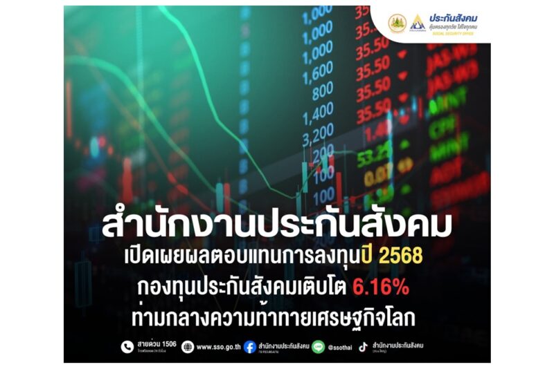 ประกันสังคมผลตอบแทนการลงทุนปี 2568 กองทุนประกันสังคมเติบโต 6.16% ท่ามกลางความท้าทายเศรษฐกิจโลก