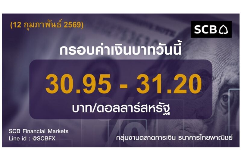 ค่าเงินบาทประจำวันที่ 12 กุมภาพันธ์ 2569 กลุ่มงานตลาดการเงิน ธนาคารไทยพาณิชย์ (SCB Financial Markets)