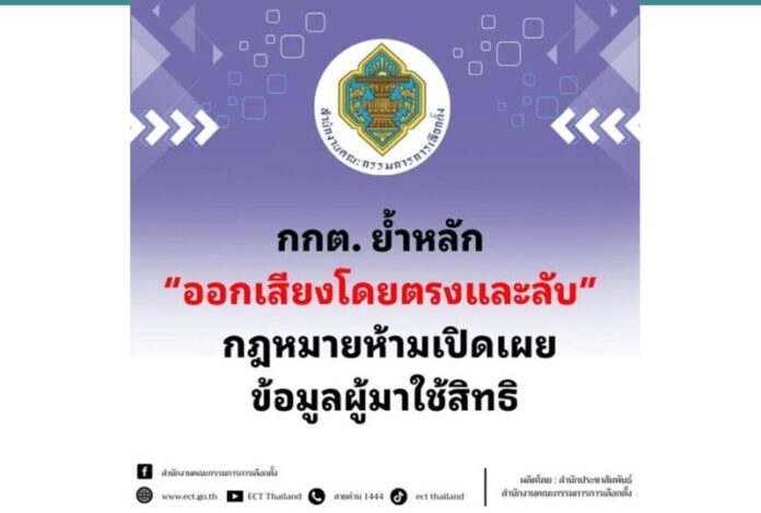 กกต.ย้ำหลักประกันตามกฎหมายที่คุ้มครองความลับของผู้มีสิทธิเลือกตั้ง สร้างความเชื่อมั่นการลงคะแนนเสียงเป็นไปโดยตรงและลับ ตามบทบัญญัติของรัฐธรรมนูญแห่งราชอาณาจักรไทย พ.ศ.2560