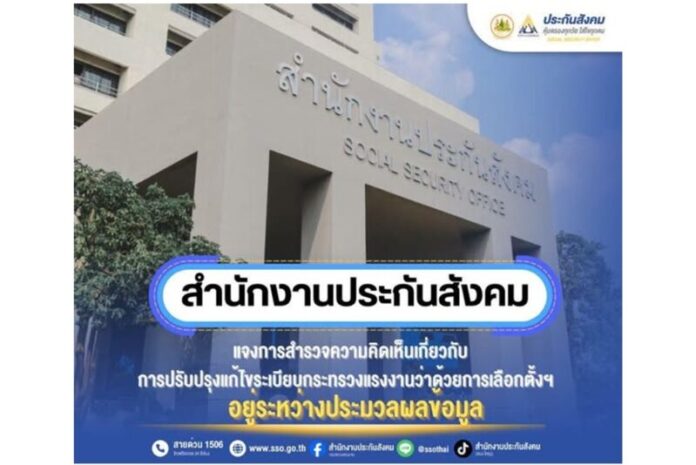 ประกันสังคมแจงการสำรวจความคิดเห็นเกี่ยวกับการปรับปรุงแก้ไขระเบียบกระทรวงแรงงานว่าด้วยการเลือกตั้งฯ อยู่ระหว่างประมวลผลข้อมูล มีผู้ร่วมแสดงความคิดเห็นมากกว่า 7 แสนราย