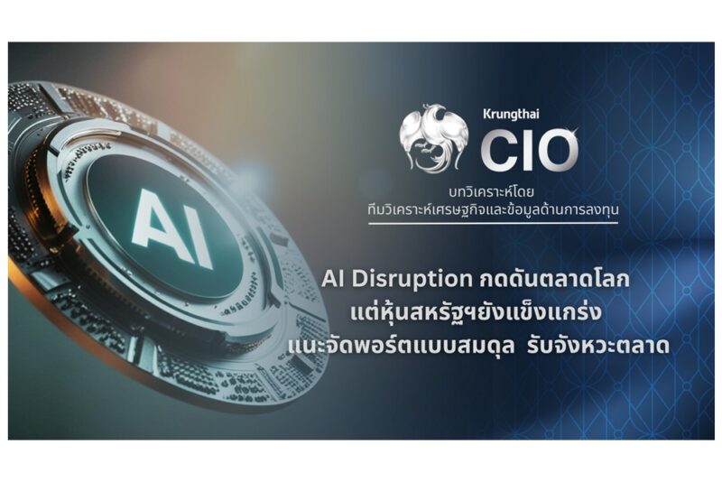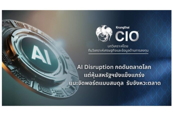 วันที่ 17 กุมภาพันธ์ 2569 ทีมกลยุทธ์การลงทุน ธนาคารกรุงไทย (Krungthai Chief Investment Office : CIO) วิเคราะห์ตลาดและการลงทุนรายสัปดาห์ ระหว่างวันที่ 16-20 กุมภาพันธ์ 2569 ว่า ตลาดการเงินโลกยังผันผวนในระยะสั้นจากความกังวลต่อผลกระทบของ AI Disruption ที่ไม่ได้จำกัดเฉพาะกลุ่มซอฟต์แวร์ แต่ขยายวงไปยังหลายภาคธุรกิจ อย่างไรก็ตาม AI ยังเป็นแรงขับเคลื่อนเชิงโครงสร้างที่ช่วยเพิ่มประสิทธิภาพและสร้างโอกาสการเติบโตในระยะกลางถึงยาว สำหรับธุรกิจที่สามารถประยุกต์ใช้เทคโนโลยีได้อย่างเหมาะสม