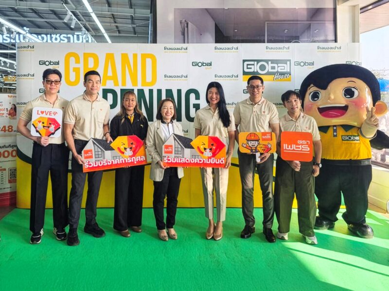 ดร.พิชญานันท์ ล้อวรลักษณ์ (ที่ 5 จากซ้าย) ผู้ช่วยประธานเจ้าหน้าที่บริหารสายการขายและการตลาด บริษัทผลิตภัณฑ์ตราเพชร จำกัด (มหาชน) หรือ DRT ร่วมแสดงความยินดีกับ นางสาว อาพันธ์ชนิตถ์ เพชรวงศ์ (ที่ 4 จากซ้าย) ผู้ช่วยรองประธานเจ้าหน้าที่บริหาร บริษัท สยามโกลบอลเฮ้าส์ จำกัด (มหาชน) ผู้บริหารศูนย์รวมสินค้าวัสดุก่อสร้างและตกแต่งบ้านครบวงจร ในโอกาสเปิดบริการโกลบอลเฮ้าส์ สาขาสมเด็จ จังหวัดกาฬสินธุ์ อย่างเป็นทางการ ซึ่งเป็นสาขาลำดับที่ 95 เพื่อขยายตลาดในพื้นที่ภาคตะวันออกเฉียงเหนือตอนกลางและตอนบน รวมถึงรองรับความต้องการใช้สินค้าวัสดุก่อสร้างและตกแต่งในจังหวัดกาฬสินธุ์ ซึ่งเป็นหนึ่งในจังหวัดเศรษฐกิจที่สำคัญ พร้อมร่วมบริจาคเพื่อสาธารณกุศล