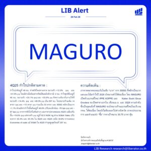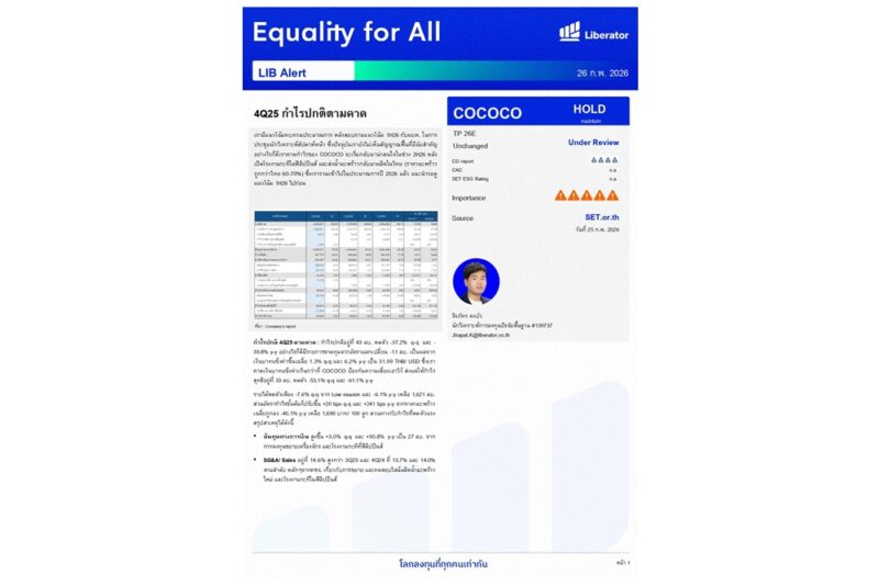 วันที่ 26 กุมภาพันธ์ 2569 บริษัทหลักทรัพย์ ลิเบอเรเตอร์ จำกัด หรือ “Liberator” (บล.ลิเบอเรเตอร์) ออกบทวิเคราะห์ประจำวันที่ 26 กุมภาพันธ์ 2569
