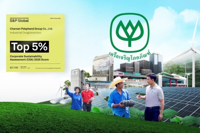 เครือเจริญโภคภัณฑ์ (CP Group) ได้รับการจัดอันดับ Top 5% ในกลุ่มอุตสาหกรรม Industrial Conglomerates จากการประกาศผล The Sustainability Yearbook 2026 โดย S&P Global ด้วยคะแนนประเมิน 82 จาก 100 คะแนน นับเป็นการติดอันดับต่อเนื่องเป็นปีที่ 5 โดยการจัดอันดับปีนี้มีบริษัทจากทั่วโลกกว่า 9,200 แห่งเข้าร่วมการประเมิน และมีเพียง 848 บริษัทที่ได้รับการคัดเลือกเข้าสู่ Sustainability Yearbook สะท้อนมาตรฐานการประเมินที่เข้มข้น โดยในกลุ่ม Industrial Conglomerates มีบริษัทเข้าร่วม 95 แห่ง และมีเพียง 5 บริษัทที่ได้คะแนนสูงสุดในกลุ่ม ได้แก่ Keppel (สิงคโปร์), CP Group (ไทย), Siemens (เยอรมนี), SK Inc (เกาหลีใต้) และ Metlen Energy & Metal (กรีซ)