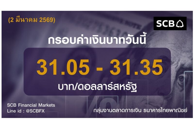กลุ่มงานตลาดการเงิน ธนาคารไทยพาณิชย์ (SCB Financial Markets) ค่าเงินบาทประจำวันที่ 2 มีนาคม 2569