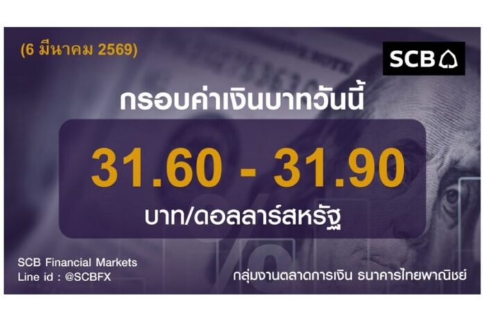 กลุ่มงานตลาดการเงิน ธนาคารไทยพาณิชย์ (SCB Financial Markets) ค่าเงินบาทประจำวันที่ 6 มีนาคม 2569