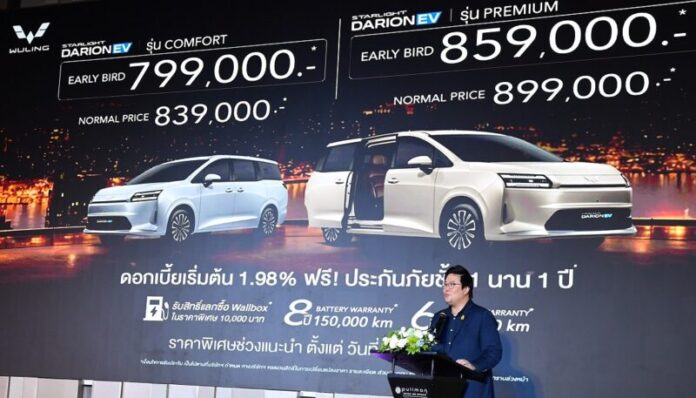 Wuling Thailand รุกตลาดรถครอบครัว เปิดตัว STARLIGHT DARION EV ชูจุดขาย “MPV-VAN 7 ที่นั่ง ประตูสไลด์ สไตล์รถตู้พรีเมี่ยมรุ่นแรกและรุ่นเดียวในไทย ในราคารถเก๋ง” พร้อมแคมเปญพิเศษจำกัดเวลาถึงวันที่ 31 มีนาคมนี้เท่านั้น