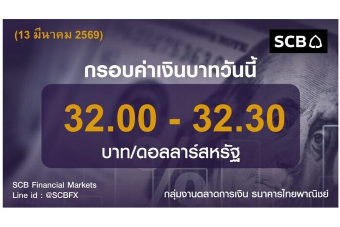 กลุ่มงานตลาดการเงิน ธนาคารไทยพาณิชย์ (SCB Financial Markets) ค่าเงินบาทประจำวันที่ 13 มีนาคม 2569