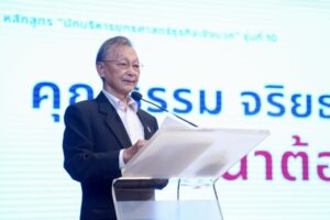 ภายในพิธีเปิดยังได้รับเกียรติจาก นายชวน หลีกภัย ประธานที่ปรึกษากิตติมศักดิ์ ร่วมแสดงปาฐกถาพิเศษในหัวข้อ “คุณธรรม จริยธรรม ผู้นำต้องมี” โดยเน้นย้ำว่า “วัตถุประสงค์ของหลักสูตร iSAB คือการสร้างผู้นำที่มีทั้งความสามารถและคุณธรรม ส่งเสริมให้ผู้นำดำเนินธุรกิจด้วยความซื่อสัตย์สุจริต ซึ่งสอดคล้องกับแนวทางของสหพัฒนพิบูล ทุกสถานะล้วนเป็นทั้งผู้นำและผู้ตามภายใต้บทบาทหน้าที่ของตน หากผู้นำขาดจริยธรรมหรือคุณธรรม ย่อมส่งผลกระทบต่อธุรกิจได้ เคล็ดลับสำคัญสำหรับผู้เรียนคือ ควรมีการสรุปเนื้อหาในแต่ละช่วง เพื่อให้การเรียนรู้เกิดประสิทธิภาพสูงสุด”