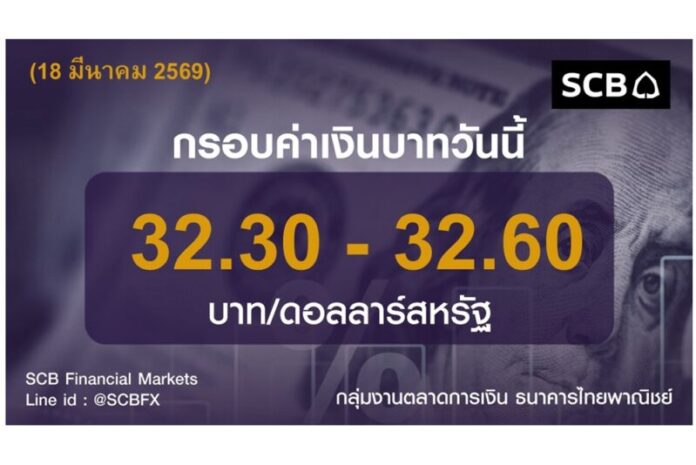 กลุ่มงานตลาดการเงิน ธนาคารไทยพาณิชย์ (SCB Financial Markets) ค่าเงินบาทประจำวันที่ 18 มีนาคม 2569