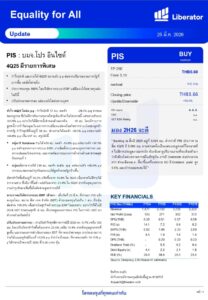 วันที่ 25 มีนาคม 2569 บริษัทหลักทรัพย์ ลิเบอเรเตอร์ จำกัด หรือ “Liberator” (บล.ลิเบอเรเตอร์) ออกบทวิเคราะห์ประจำวันที่ 25 มีนาคม 2569