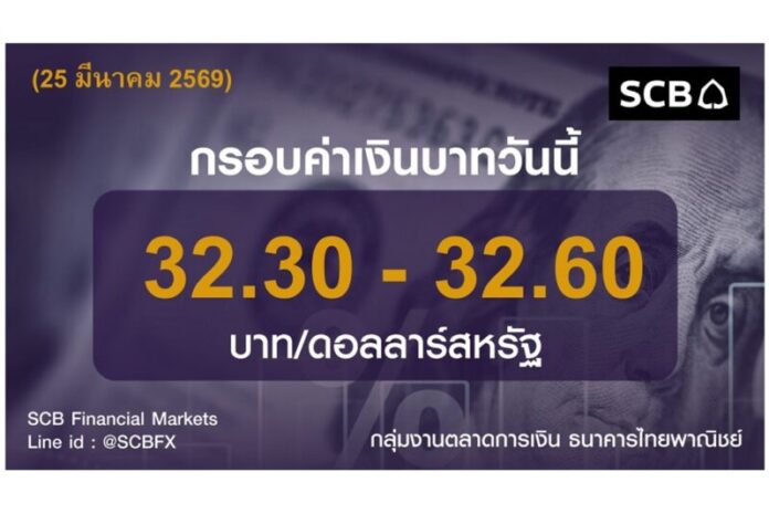 กลุ่มงานตลาดการเงิน ธนาคารไทยพาณิชย์ (SCB Financial Markets) ค่าเงินบาทประจำวันที่ 25 มีนาคม 2569