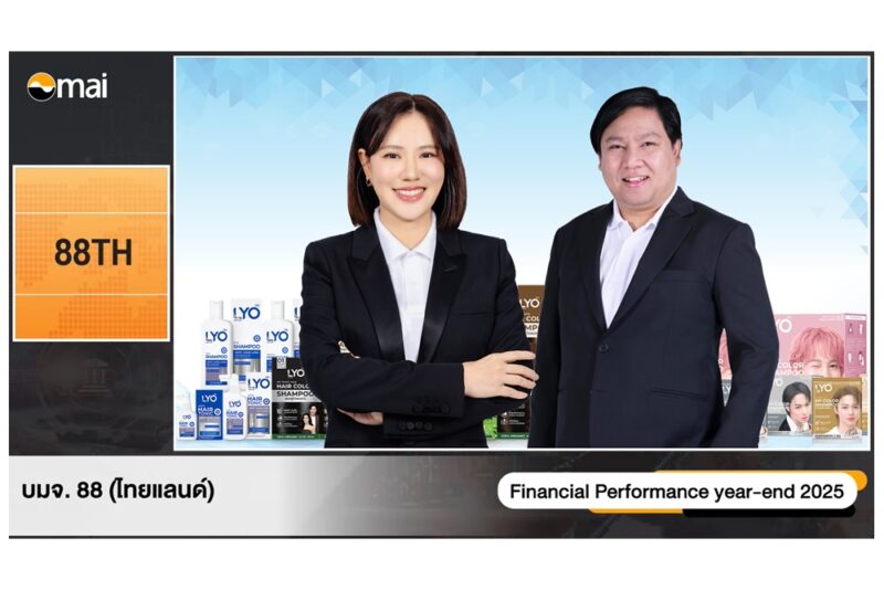 บมจ. 88(ไทยแลนด์) หรือ “88TH” ประกาศเดินหน้าเต็มสูบ หลัง LYO MY COLOR SHAMPOO ได้ “นุนิว ชวรินทร์” นั่งแท่นพรีเซ็นเตอร์ ดันกระแสตอบรับพุ่งเกินต้าน ล่าสุดวันนี้ (25 มี.ค.69) ดีเดย์เปิดขายพร้อมกันทุกช่องทางออนไลน์ จ่อเข้าครบทุกช่องทาง Modern Trade ภายในเดือน พ.ค.นี้ ประกาศย้ำปี 2569 เป้ารายได้โต 30% เติบโตต่อจากปี 2568 ที่สร้าง New High โกยกำไรสุทธิพุ่ง 81% แจกปันผล 0.185 บาท จ่อ XD 29 เม.ย.นี้