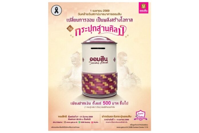 มาแล้วจ้า! ออมสิน เปิดตัว “กระปุกสานศิลป์” วาระวันสถาปนา 1 เมษายน 69 ครบ 113 ปี ยกระดับการออมเป็นพลังสืบสานงานหัตถศิลป์ สร้างโอกาส กระจายรายได้ให้ชุมชน เปิดจองสิทธิ์ 27-31 มี.ค.69