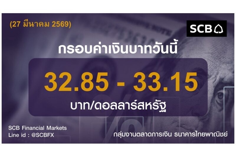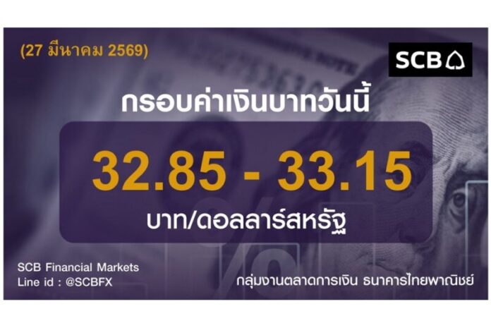 กลุ่มงานตลาดการเงิน ธนาคารไทยพาณิชย์ (SCB Financial Markets) ค่าเงินบาทประจำวันที่ 27 มีนาคม 2569