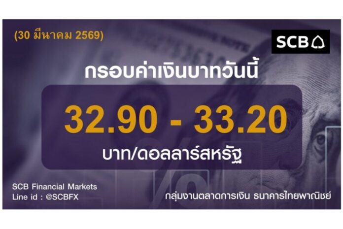 ไทยพาณิชย์ประเมินค่าเงินบาทวันนี้เคลื่อนไหวในกรอบ 32.90-33.20บาท/ดอลลาร์ บาทยังอ่อนค่าต่อเนื่องตามราคาน้ำมันที่สูงขึ้น