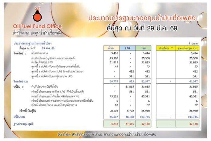 ประมาณการฐานะกองทุนน้ำมันเชื้อเพลิง ณ วันที่ 29 มีนาคม 2569 ฐานะกองทุนน้ำมันเชื้อเพลิงสุทธิ