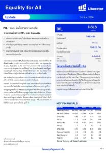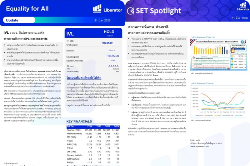 วันที่ 31 มีนาคม 2569 บริษัทหลักทรัพย์ ลิเบอเรเตอร์ จำกัด หรือ “Liberator” (บล.ลิเบอเรเตอร์) ออกบทวิเคราะห์ประจำวันที่ 31 มีนาคม 2569