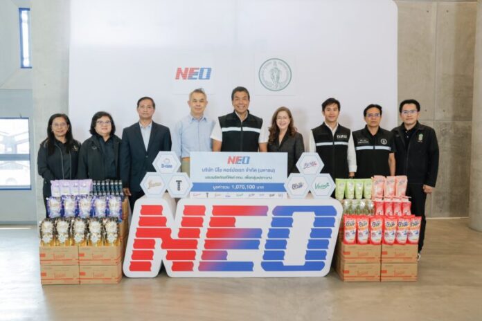 สำหรับความร่วมมือครั้งนี้ NEO ได้คัดสรรผลิตภัณฑ์ของใช้จำเป็นในชีวิตประจำวันจากแบรนด์ในเครือ อาทิ Fineline, D-nee, BeNice, Vivite, TROS และ Tomi รวมกว่า 9,100 ชิ้น คิดเป็นมูลค่ารวมกว่า 1,070,100 บาท ครอบคลุมทั้งผลิตภัณฑ์สำหรับเด็ก ผลิตภัณฑ์อาบน้ำและดูแลผิว ผลิตภัณฑ์ระงับกลิ่นกาย ตลอดจนผลิตภัณฑ์ซักผ้าและผลิตภัณฑ์ทำความสะอาดบ้าน เพื่อช่วยส่งเสริมสุขอนามัยและความเป็นอยู่ที่ดีของกลุ่มเปราะบางในแต่ละพื้นที่