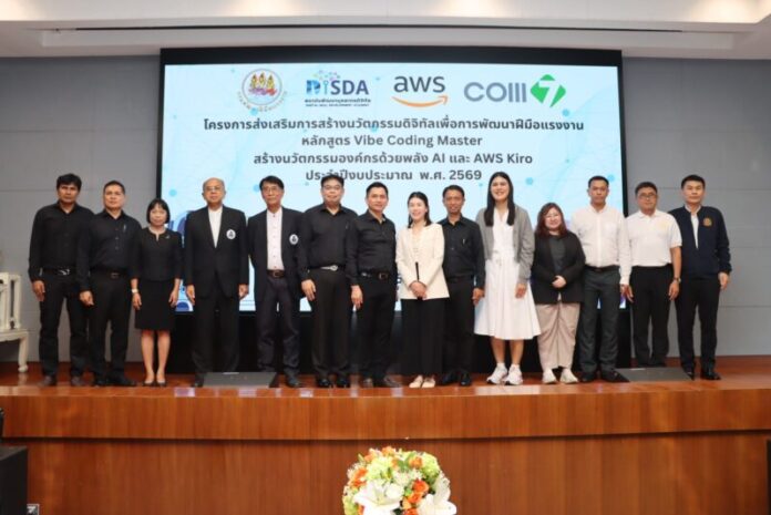 วันที่ 3 เมษายน 2569 นายสมชาติ สุภารี รองอธิบดีกรมพัฒนาฝีมือแรงงาน เป็นประธานในพิธีเปิดโครงการส่งเสริมการสร้างนวัตกรรมดิจิทัลเพื่อการพัฒนาฝีมือแรงงาน หลักสูตร Vibe Coding Master สร้างนวัตกรรมองค์กรด้วยพลัง AI และ AWS Kiro เดินหน้ายกระดับศักยภาพบุคลากรภาครัฐสู่ยุคดิจิทัล มีผู้แทนจากบริษัท อเมซอน เว็บ เซอร์วิสเซส (AWS) ผู้แทนจากบริษัท คอมเซเว่น จำกัด (มหาชน) ผู้บริหารกรมพัฒนาฝีมือแรงงาน ร่วมงาน ณ ห้องประชุมชั้น 6 อาคารสูง 6 ชั้น กรมพัฒนาฝีมือแรงงาน