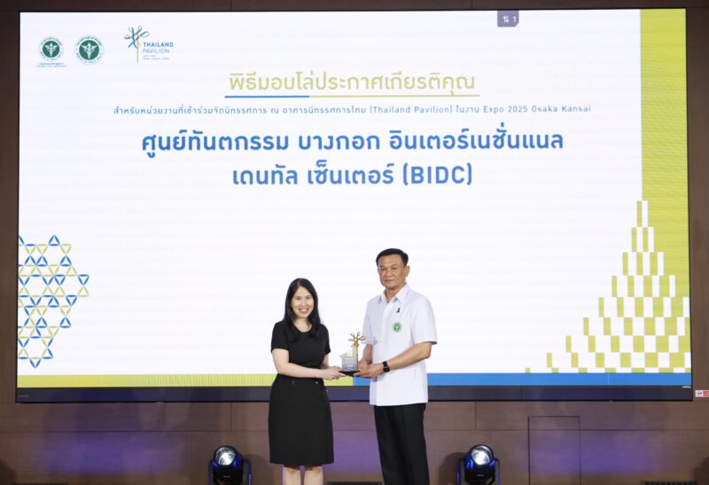 ศูนย์ทันตกรรม บางกอก อินเตอร์เนชั่นแนล เดนทัล เซ็นเตอร์ (Bangkok International Dental Center – BIDC) ผู้นำให้บริการทันตกรรมครบวงจรของประเทศไทย โดยคุณลูซินดา เฉิน ประธานเจ้าหน้าที่ฝ่ายการตลาด เป็นตัวแทนรับมอบโล่ประกาศเกียรติคุณ จากนายแพทย์สุระ วิเศษศักดิ์ ที่ปรึกษากรมสนับสนุนบริการสุขภาพ (สบส.) ในฐานะเป็นส่วนหนึ่งของหน่วยงานภาคเอกชนที่ได้เข้าร่วมเผยแพร่ข้อมูล และแสดงผลงานนวัตกรรมด้านทันตกรรมของประเทศไทยสู่การเป็นศูนย์กลางด้าน Healthcare และ Dental Tourism ในระดับนานาชาติ จากการจัด Thailand Pavilion งาน Expo 2025 Osaka Kansai ประเทศญี่ปุ่น