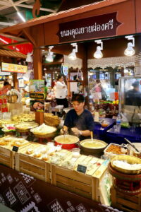 • ร้านสมชาย ชาใต้ เติมความสดชื่นระหว่างเดินงานด้วยชาไทยสูตรปักษ์ใต้แท้ๆ ที่ขึ้นชื่อเรื่องรสชาติเข้มข้น หอมใบชา และไม่หวานจนเกินไป ช่วยเติมความสดชื่น และเข้ากันได้ดีกับหลากหลายเมนูของอร่อยภายในงาน