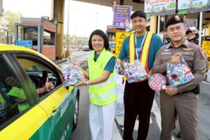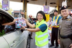 DMT ผนึกทีม ตร.จร.ลุยแจกกระเป๋ากันง่วงช่วงสงกรานต์ให้ผู้ใช้ทางด่วน Tollway เดินทางปลอดภัย