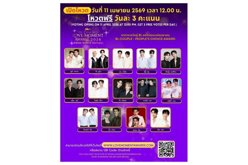 พร้อมแล้วกับงานรางวัลอันทรงเกียรติแห่งมหาชน THE VIRAL HITS LOVE MOMENT AWARDS 2026 โดยจะเปิดโหวตตั้งแต่วันที่ 11 เมษายน 2569 เวลา 12.00 น. และจะปิดโหวตในวันที่ 20 มิถุนายน 2569 เวลา 23.59 น. โหวตไดhทาง www.lovemomentawards.com โหวตฟรี วันละ 3 คะแนน จัดงานประกาศผลรางวัล ในวันที่ 30 มิถุนายน 2569 ณ โรงละครอักษรา คิง เพาเวอร์ เวลา 17.00 น.เป็นต้นไป