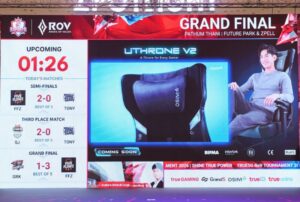 ภายใต้แคมเปญ “The Throne for Every Gamer” OSIM ผนึกกำลังกับ True5G eSports Tournament สร้างปรากฏการณ์ครั้งสำคัญให้วงการอีสปอร์ตไทย ด้วยการเปิดตัว uThrone V2 Gaming Massage Chair อย่างเป็นทางการครั้งแรกในประเทศไทย บนเวทีรอบชิงชนะเลิศของการแข่งขัน True5G eSports Tournament บรรยากาศการแข่งขันสุดเข้มข้น ไฮไลต์พิเศษของงาน คือการมอบ uThrone V2 Gaming Massage Chair มูลค่า 164,950 บาท ให้แก่ผู้ชนะการแข่งขันเกม ROV ในฐานะเกม