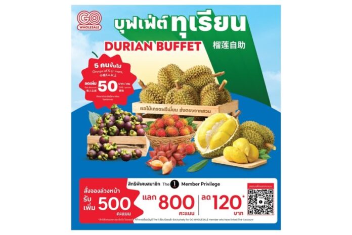 ห้ามพลาด! โก โฮลเซลล์ ชวนฟินไปกับ ‘บุฟเฟต์ทุเรียนสุดพรีเมียม’ สดตรงจากสวน ครบครันผลไม้ฤดูกาล คุ้มค่าราคาพิเศษ ช่วยเกษตรกรชาวสวน