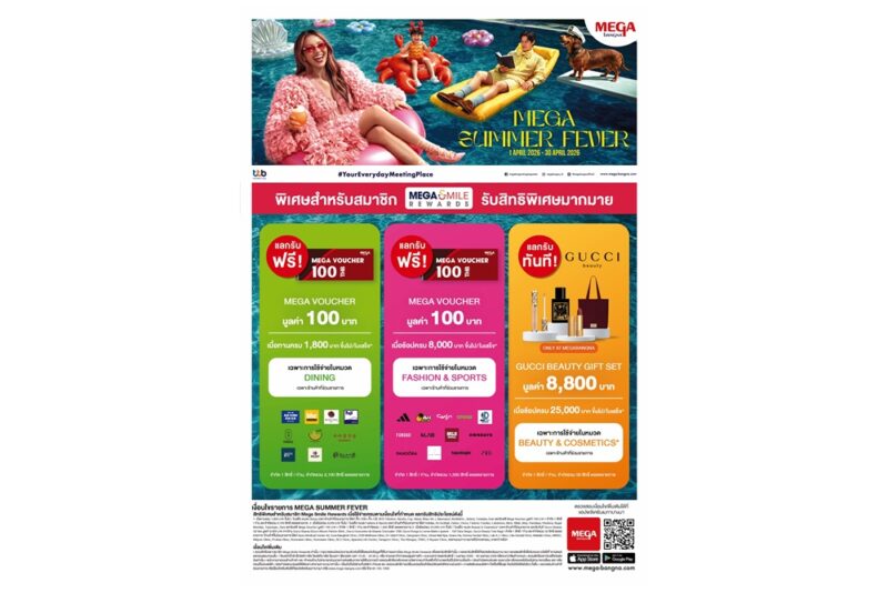 ขอชวนลูกค้าทุกคนร่วมสัมผัสประสบการณ์ซัมเมอร์สุดคึกคักในแคมเปญ “MEGA SUMMER FEVER” ระหว่างวันที่ 1 – 30 เม.ย. 69 ที่อัดแน่นด้วยโปรโมชันสุดคุ้ม สิทธิพิเศษหลากหลาย และกิจกรรมความสนุกครบทุกมิติ เติมเต็มทุกช่วงเวลาแห่งความสุขให้สดชื่น มีสีสัน และเต็มไปด้วยพลังความสนุกในซัมเมอร์นี้