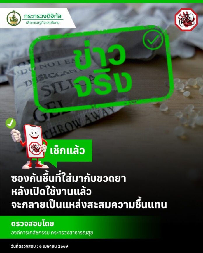 อันดับที่ 1 ข่าวจริง เรื่อง ซองกันชื้นที่ใส่มากับขวดยา หลังเปิดใช้งานแล้ว จะกลายเป็นแหล่งสะสมความชื้นแทน