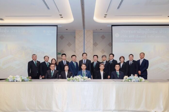 นายธีรนันท์ ศรีหงส์ ประธานกรรมการบริษัท พร้อมด้วยนายพิทักษ์ รัชกิจประการ ประธานเจ้าหน้าที่บริหาร และกรรมการผู้จัดการใหญ่ นายรังสรรค์ พวงปราง ผู้ช่วยกรรมการผู้จัดการใหญ่ และคณะกรรมการ บริษัท พีทีจี เอ็นเนอยี จำกัด (มหาชน) (PTG) ถ่ายภาพร่วมกันในงานประชุมสามัญผู้ถือหุ้นประจำปี 2569 โดยผู้ถือหุ้นมีมติเห็นชอบทุกวาระ พร้อมกันนี้ยังได้อนุมัติการจ่ายเงินปันผลจากกำไรสุทธิประจำปี 2568 ในอัตราหุ้นละ 0.35 บาท คิดเป็นจำนวนเงินรวมทั้งสิ้น 584.5 ล้านบาท กำหนดวันจ่ายเงินปันผล ในวันที่ 15 พฤษภาคม 2569