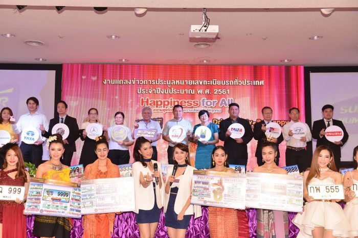ที่อาคาร 6 ชั้น 7 กรมการขนส่งทางบก นายสนิท พรหมวงษ์ อธิบดีกรมการขนส่งทางบก พร้อมด้วยนางพรรณี พุ่มพันธ์ ผู้ตรวจราชการกรมการขนส่งทางบก และนายยงยุทธ นาคแดง ผู้อำนวยการสำนักมาตรฐานงานทะเบียนและภาษีรถ และพันธมิตรเครือข่าย ร่วมจัดการแถลงข่าว “ประมูลทะเบียนรถสวย” (Super Number) ซึ่งเป็นส่วนหนึ่งของการสร้างการรับรู้ และความเข้าใจ ให้ประชาชนตระหนักถึงผลกระทบจากการเกิดอุบัติเหตุบนท้องถนน กระตุ้นเตือนให้ผู้ใช้รถใช้ถนนคำนึงถึงความปลอดภัยมากขึ้น